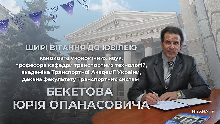До ювілею кандидата економічних наук, професора кафедри транспортних технологій, академіка Транспортної Академії України, декана факультету Транспортних систем Бекетова Юрія Опанасовича, пропонуємо виставку видань науковця.