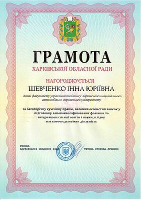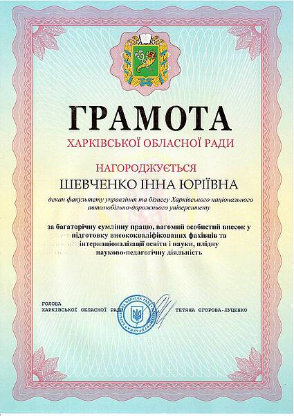 Вітаємо декана ФУБ, д.е.н., доц. Шевченко І.Ю. з нагородженням Грамотою Харківської обласної ради!