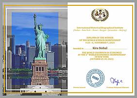 25-30 жовтня 2023 року у м. Нью-Йорк (США) відбувся І Чемпіонат Світу з економіки. У міжнародному змаганні прийняли участь 120 учасників із 20 країн світу. Нагороди здобули 60 команд та вчених в індивідуальному заліку. Серед суддів було 9 Нобелівських лауреатів.