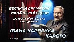 Наукова бібліотека пропонує до перегляду віртуальну виставку, підготовлену з нагоди 180-річчя від дня народження Івана Карпенка-Карого – видатного драматурга, актора, театрального діяча, одного із корифеїв українського театру. У виставці представлені матеріали, що висвітлюють життєвий і творчий шлях митця, а також видання з фонду наукової бібліотеки.