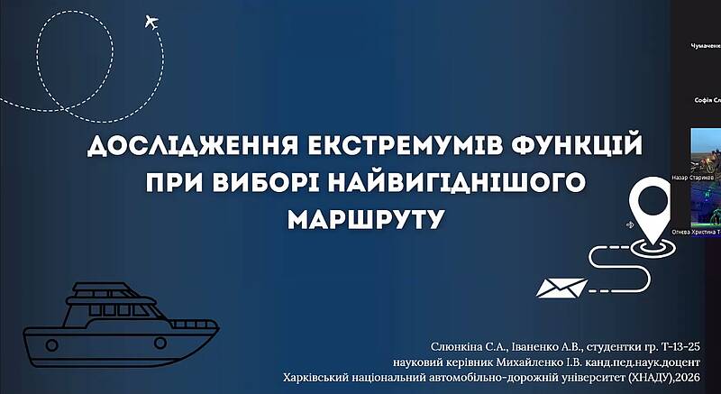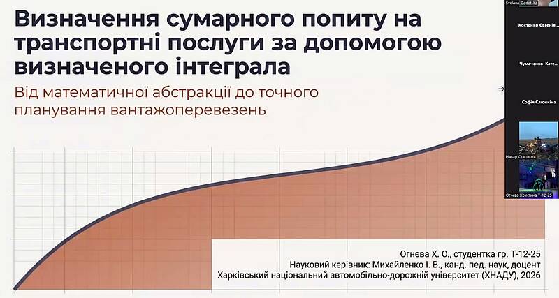 1 квітня 2026р. о 16.00 відбулося онлайн засідання секції вищої математики, класичних і прикладних математичних дисциплін 88-ої Міжнародної студентської наукової конференції ХНАДУ на платформі ZOOM.