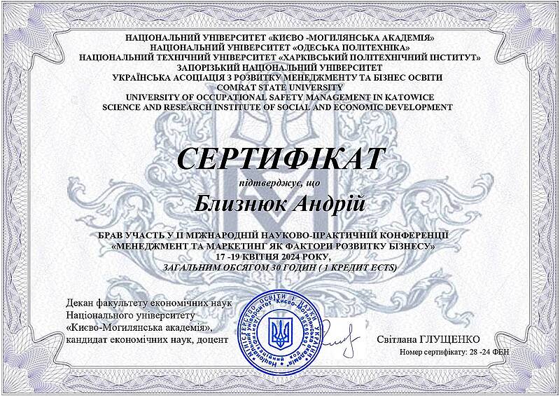 Цей захід став важливою платформою для обміну знаннями, досвідом та найкращими практиками у сфері менеджменту та маркетингу. Було презентовано низку інноваційних ідей та стратегій, що сприяють розвитку бізнесу та його адаптації до сучасних викликів. Наші викладачі, студенти та аспірант мали унікальну можливість зануритися в актуальні дискусії, обговорити тренди та перспективи розвитку галузі, що безсумнівно збагатило їхній професійний та академічний досвід.