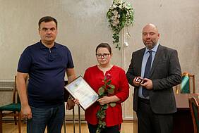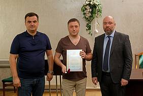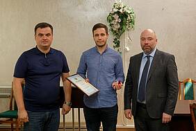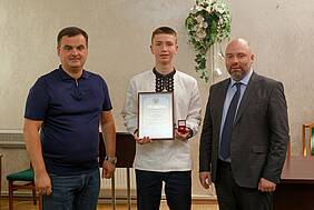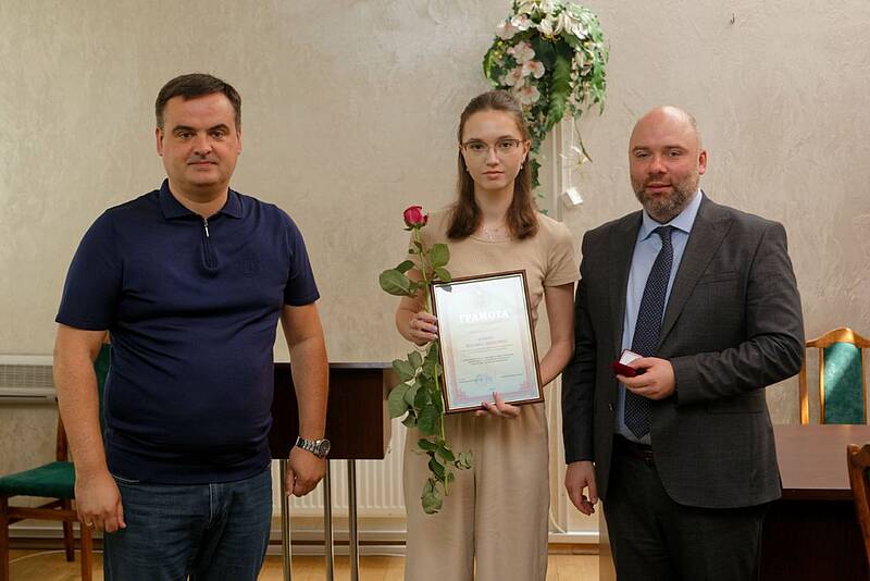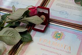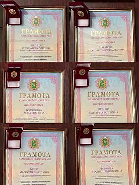 Грамоти Харківської обласної ради та пам'ятні значки вручив Євгеній Грицьков, радник голови Харківської обласної ради з питань науки.