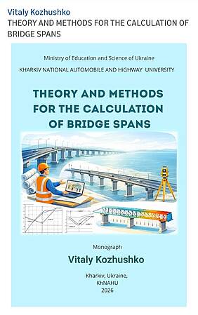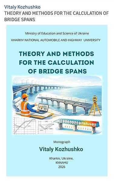 У Харківському національному автомобільно-дорожньому університеті в рамках реалізації програми профспілки щодо підготовки та публікації 95 наукових і навчальних видань на міжнародному рівні, присвячених 95-річчю ХНАДУ, вийшла монографія "Теорія і методи розрахунку прольотних будов" професора кафедри мостів, конструкцій і будівельної механіки ім. В. О. Російського Кожушка Віталія Петровича.