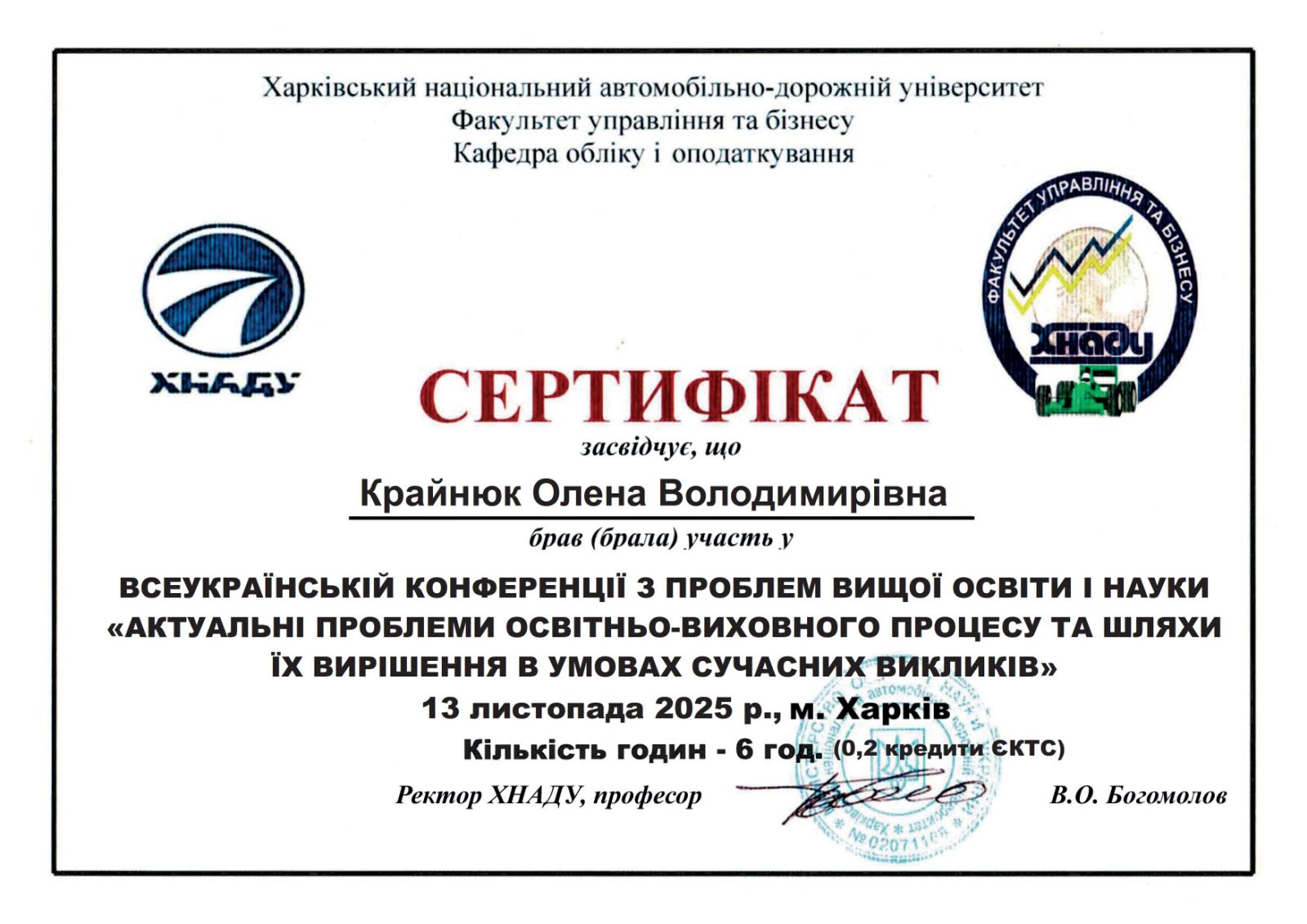 Published: 11/24/2025 Програма підготовки тренерів та фасилітаторів з віртуального обміну Співробітники кафедри іноземних мов, доц. Скрипник Н.С. та викл. Лук’яненко Н.М., взяли участь у першій когорті Програми підготовки тренерів та фасилітаторів з віртуального обміну (Virtual Exchange Trainer and Facilitator Program), яку організувала... Читати далі