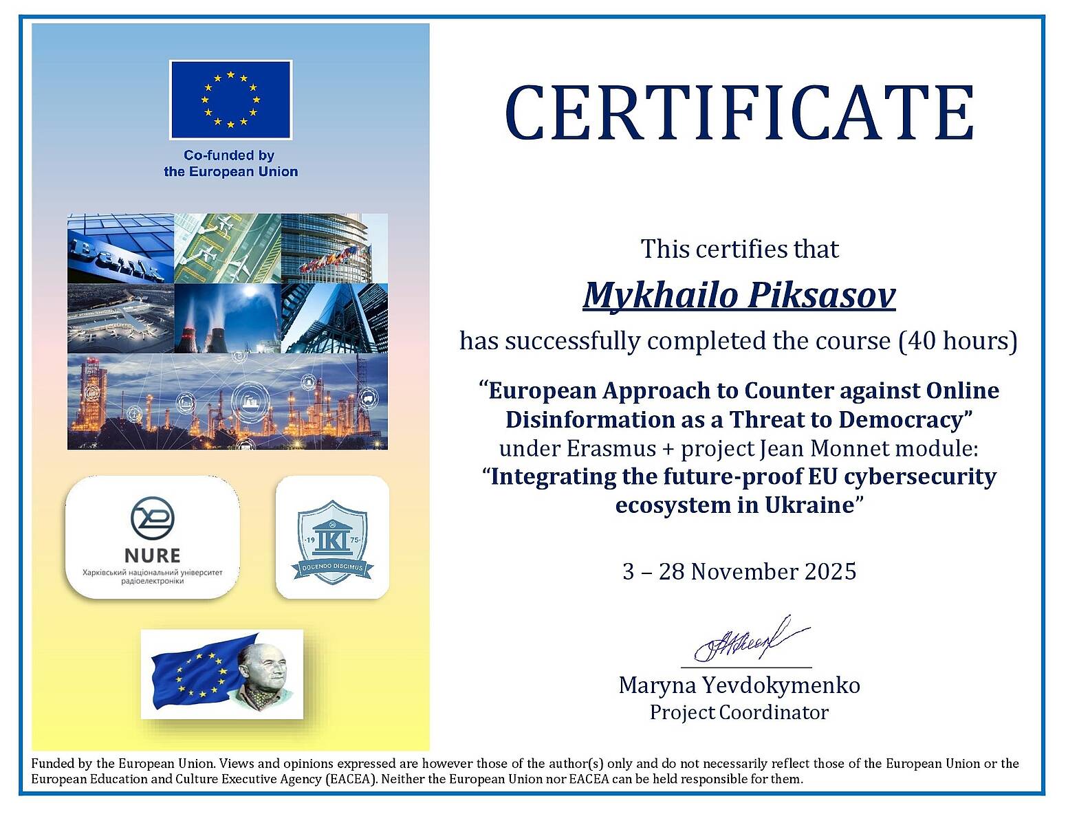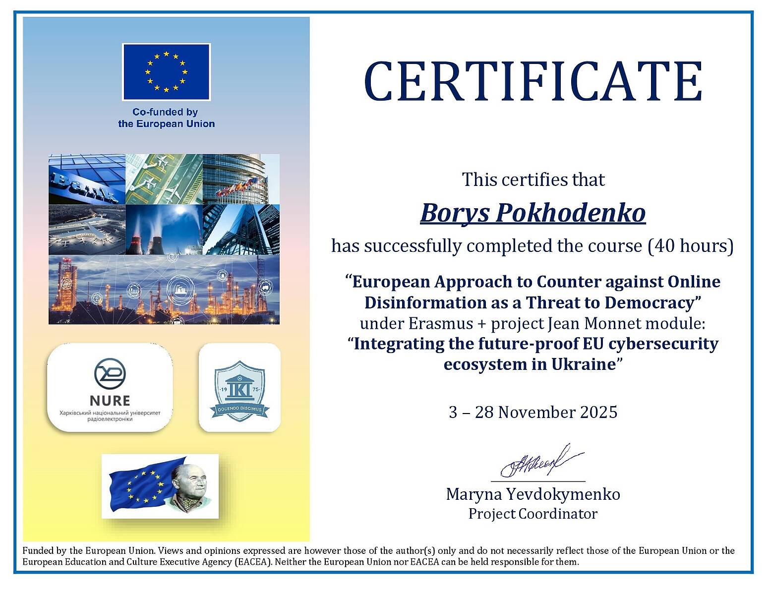 Доцентка кафедри метрології та БЖД Медведовська Я.С.  пройшла підвищення кваліфікації за програмою "Сучасні тенденції професійного розвитку викладачів ЗВО" на базі Центру українсько-європейського наукового співробітництва у період з 06.10.2025 р. по...