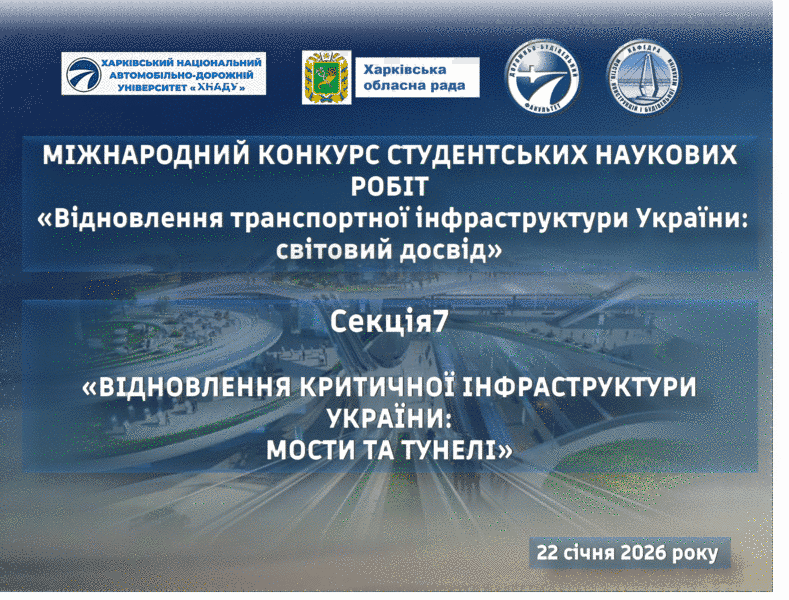 22 січня 2026 року у визначний для нашої держави день - День Соборності України, на базі Харківського національного автомобільно-дорожнього університету за підтримки Харківської обласної ради відбувся Міжнародний конкурс студентських наукових робіт «Відновлення транспортної інфраструктури України: світовий досвід».