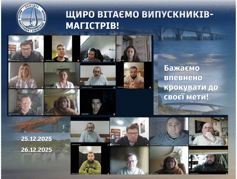 25-26 грудня 2025 р. на кафедрі мостів, конструкцій і будівельної механіки ім. В.О. Російського відбувся захист магістерських робіт