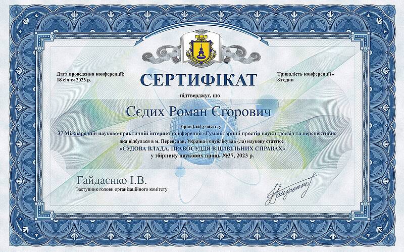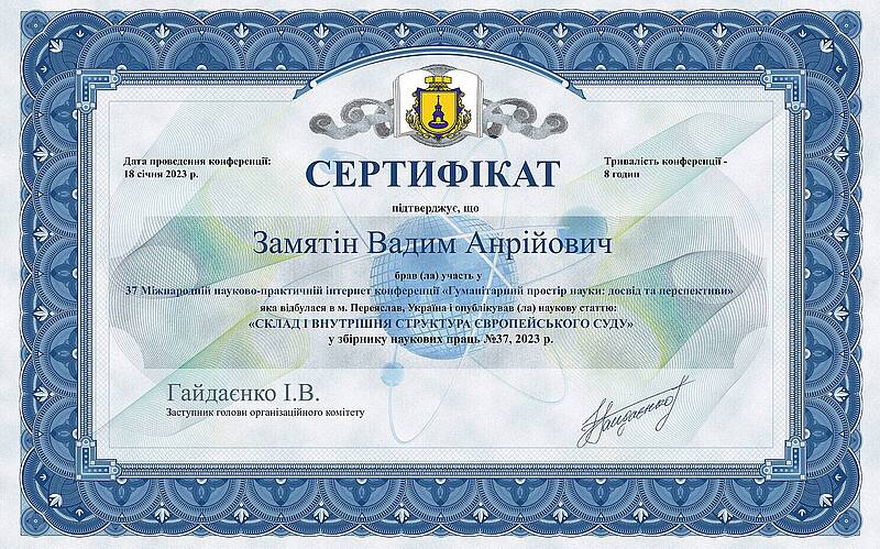 18 січня 2023 року студенти групи ЕА-11мб-22 Бабіч В.А., Замятін В.А., Земляний В.О., Карпенко К.В., Мкртчян О. К., Прокопов А.О., Репенько І.Г. та Сєдих Р.Є. під керівництвом доцента кафедри обліку і оподаткування Перунової Олени Миколаївни взяли участь у 37 Міжнародній науково-практичній інтернет-конференції "Гуманітарний простір науки: досвід та перспективи", яка проводилась у місті Переяслав та опублікували свої статті у Збірнику наукових праць № 37, 2023. За підсумками участі у міжнародному заході студенти та їх керівник отримали сертифікати.