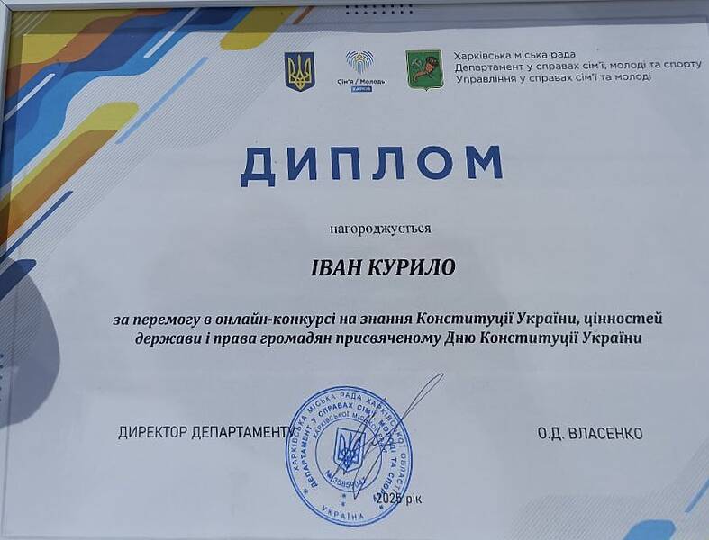 3 липня Іван взяв участь в онлайн-конкурсі до Дня Конституції України та посів призове місце, продемонструвавши обізнаність щодо державних інституцій та громадянських прав.