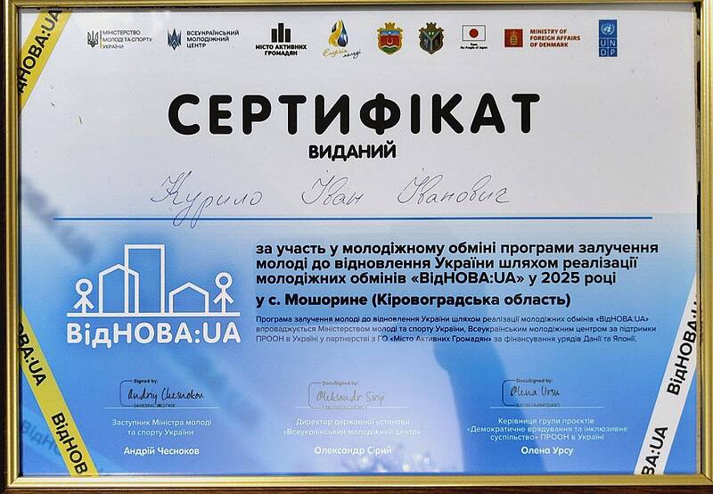 Упродовж 11–17 липня він долучився до молодіжного обміну «ВіДНОВА:UA» (с. Мошорине), де отримав досвід участі у програмах, спрямованих на відновлення громад і розвиток молодіжних ініціатив.