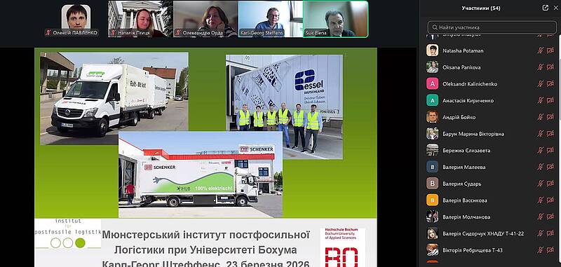 23 березня 2026 року для здобувачів третього (освітньо-наукового) рівня вищої освіти ОНП «Транспортні системи» Харківського національного автомобільно-дорожнього університету відбулася гостьова онлайн-лекція Prof. Karl-Georg Steffens, директора Інституту постфосильної логістики при Університеті Бохума (Німеччина).