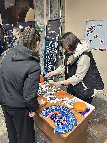 • Кафедра економіки і підприємництва презентувала локацію «Бізнес-мем лабораторія», де учасники мали змогу ознайомитися з інноваційними підходами до створення маркетингового контенту. В інтерактивному форматі абітурієнтам продемонстрували, як за допомогою гумору та популярних інтернет-форматів можна ефективно комунікувати бізнес-ідеї.