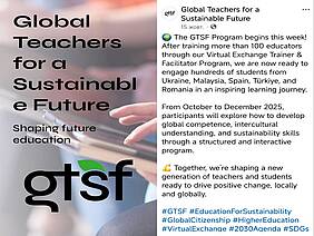 Програма «Глобальні викладачі для сталого майбутнього» — це інноваційний міжкультурний та віртуальний досвід, покликаний розвивати глобальну компетентність серед студентів освітніх програм педагогічного спрямування. Ця трансформаційна навчальна подорож надасть майбутнім освітянам знання, навички та міжкультурні перспективи, необхідні для викладання у глобально взаємопов'язаному світі. Завдяки співпраці з освітянами та студентами з 11 шанованих університетів та організацій Європи, Азії та Латинської Америки студенти отримують практичний досвід у сфері віртуального обміну, міжкультурної командної роботи та освіти, орієнтованої на сталий розвиток.