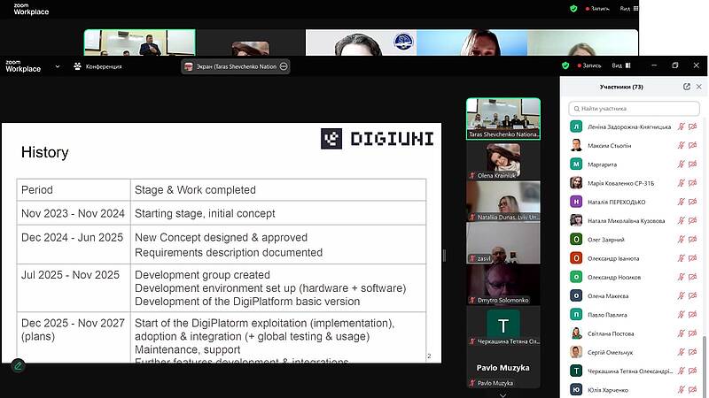 27 листопада 2025 року ХНАДУ долучився до роботи масштабної конференції «Цифрова трансформація вищої освіти України: побудова інтегрованої екосистеми». Захід проходив у межах проєкту DigiUni, що фінансується Європейським Союзом, за участі представників МОН України та європейських партнерів. Завідувачка кафедри кібербезпеки Олена Крайнюк ознайомилася з презентацією національної цифрової платформи DigiPlatform та обговорила з колегами сучасні виклики побудови єдиного освітнього простору. Участь у заході дозволила проаналізувати поточні тренди цифровізації крізь призму профільної діяльності кафедри кібербезпеки. Особливу увагу було приділено питанням архітектури цифрових екосистем, таких як «Мрія» та DigiUni, що є важливим кейсом для студентів спеціальності «Кібербезпека автоматизованих, мехатронних і робототехнічних систем». Під час конференції було розглянуто: