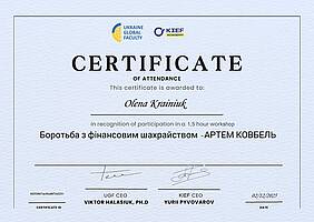 2 грудня 2025 року завідувачка кафедри кібербезпеки Олена Крайнюк взяла участь у професійному воркшопі «Боротьба з фінансовим шахрайством» в рамках ініціативи Ukraine Global Faculty. Спікером виступив експерт з форензік-розслідувань Артем Ковбель.