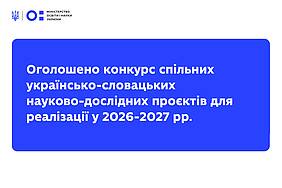 Міністерство освіти і науки України, Міністерство освіти, досліджень, розвитку та молоді Словацької Республіки та Словацьке агентство з досліджень і розвитку  06 жовтня 2025 року оголошують конкурс спільних українсько-словацьких науково-дослідних проєктів для реалізації у 2026-2027 рр., що триватиме до 08 грудня 2025 року.