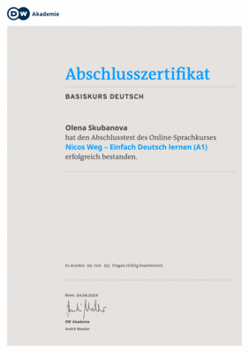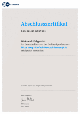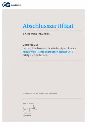 Згідно навчального плану, студенти спеціальності 035 "Прикладна лінгвістика" за перші два семестри вивчення другої іноземної мови (німецької) мають опанувати рівень А1. Студенти групи МЛ-31-22 пройшли тестування від Deutsche Welle Akademie та підтвердили свій рівень досягнень та якість навчання у нас. Вітаємо наших студентів і бажаємо подальших успіхів на шляху опанування іноземними мовами з нами!