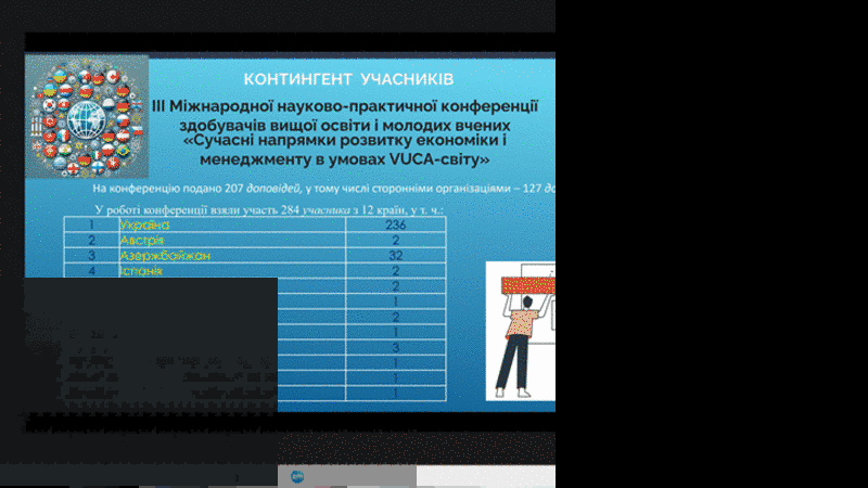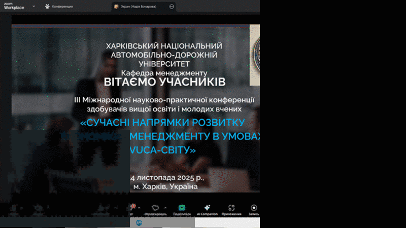 14 листопада 2025 року відбулася онлайн ІІІ Міжнародна науково-практична конференція для здобувачів вищої освіти та молодих науковців «Сучасні напрямки розвитку менеджменту та економіки в умовах VUCA-світу». Організатором заходу традиційно виступила кафедра менеджменту Харківського національного автомобільно-дорожнього університету. Подія стала масштабним майданчиком для наукових дискусій, об’єднавши 284 учасників із 12 країн світу, серед яких Україна, Азербайджан, Австрія, Казахстан, Іспанія, Китай, Нідерланди, Німеччина, Польща, США, Туреччина та Узбекистан. Загалом участь узяли представники 50 закладів вищої освіти, які подали 207 наукових доповідей, з них 127 – від зовнішніх організацій.