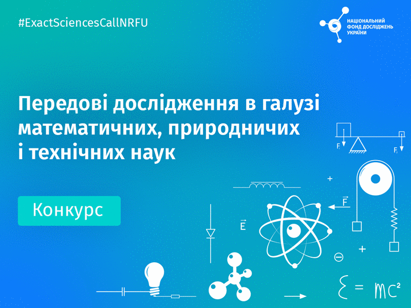 Метою конкурсу є фінансування найкращих наукових проєктів, спрямованих на вирішення фундаментальних та актуальних прикладних проблем математичних, природничих, технічних, біологічних, аграрних та медичних наук. Тематичні напрями, за якими здійснюватиметься фінансування: фундаментальні наукові дослідження у галузі математичних, природничих, технічних, біологічних, медичних та аграрних наук; прикладні наукові дослідження і науково-технічні (експериментальні) розробки у галузі математичних, природничих, технічних, біологічних, медичних та аграрних наук Для ознайомлення з умовами конкурсу переходьте за посиланням: