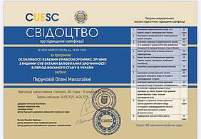 Підвищення кваліфікації організовано Центром українського наукового співробітництва. Програма включала 180 годин (6 кредитів ECTS) та була спрямована на вдосконалення професійних компетентностей науково-педагогічних працівників у сфері взаємодії правоохоронних органів із державними структурами, громадськими об’єднаннями та міжнародними партнерами під час воєнного стану.