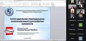 12 грудня 2025 року відбулася онлайн-зустріч здобувачів вищої освіти першого (бакалаврського), другого (магістерського) та третього (освітньо-наукового) рівнів за освітніми програмами зі спеціальностей С1 «Економіка та міжнародні економічні відносини» (051 «Економіка») та D7 «Торгівля» (076 «Підприємництво та торгівля») з фахівчинею-практиком, експерткою та роботодавцем — Калініною Наталею Павлівною, менеджеркою з питань регіонального розвитку ТОВ «Торговий дім «Пан Соус».