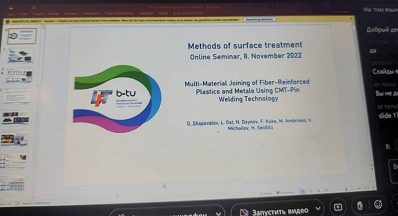 З 7 по 10 листопада 2022 року Бранденбургський університет проводив міжнародний науковий онлайн семінар, присвячений проблемам матеріалознавства.