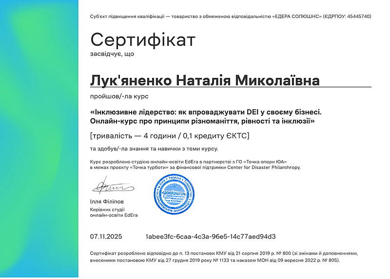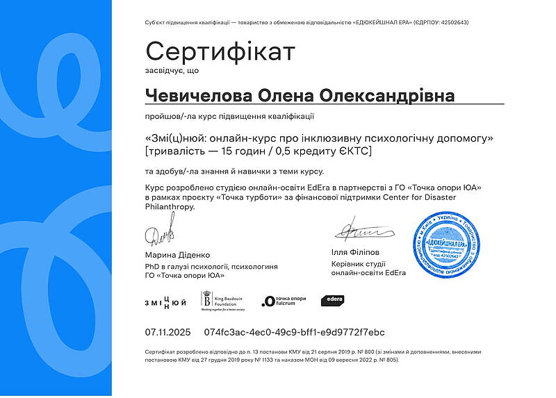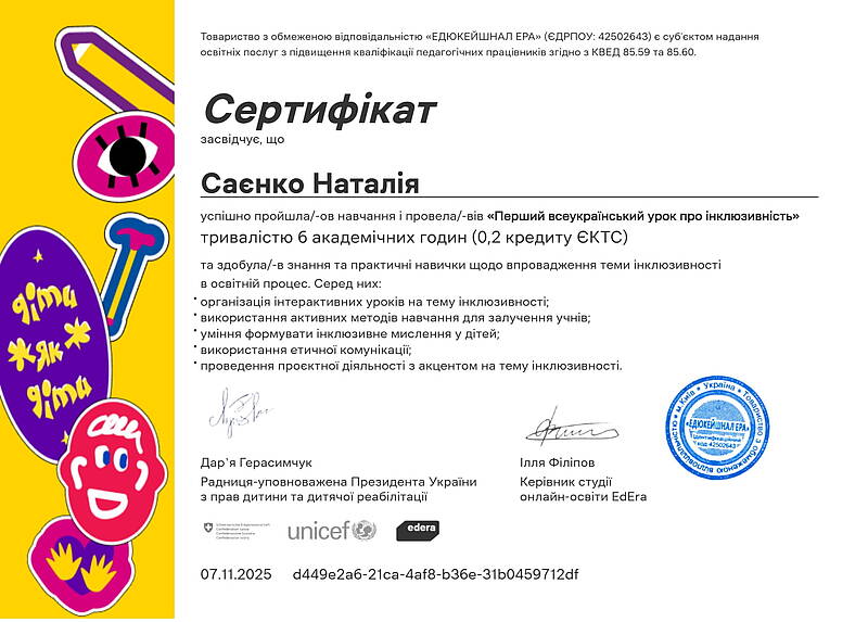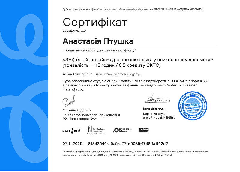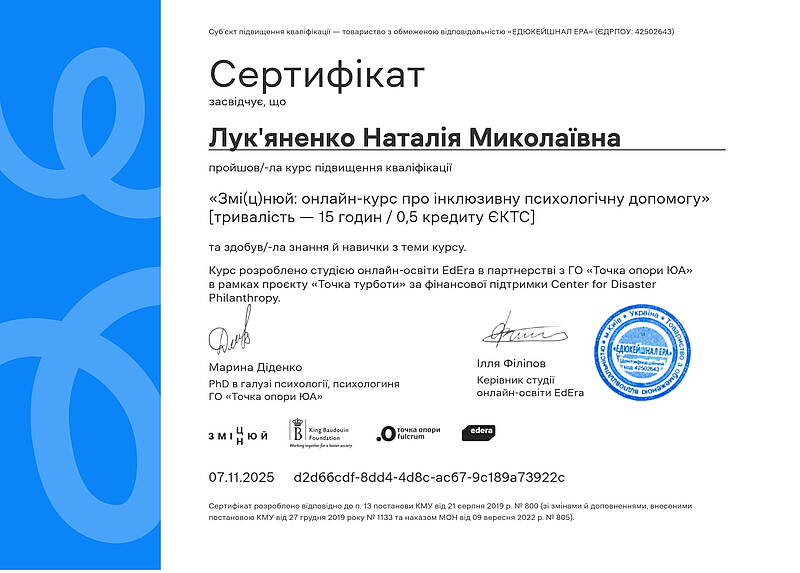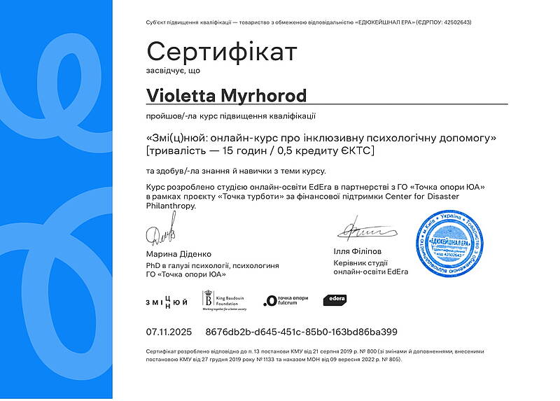Викладачі кафедри постійно вдосконалюють свою професійну майстерність, проходячи підвищення кваліфікації. Це сприяє впровадженню сучасних підходів до навчання, розвитку інклюзивного мислення та створенню відкритого освітнього простору, комфортного для всіх учасників навчального процесу.