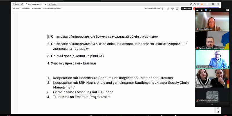 16 січня в онлайн-форматі відбулась робоча зустріч з директором Інституту постфосильної логістики Карлом-Георгом Штеффенсом, що стало логічним продовженням міжнародної співпраці, започаткованої наприкінці 2025 року під час офіційної зустрічі у ХНАДУ.
