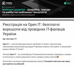 12 листопада о 17:00 відбудеться онлайн-воркшоп «Мобільні додатки – розробка, тренди та майбутнє мобільних технологій», організований Kharkiv IT Cluster спільно з компанією Telesens у межах освітнього проєкту Open IT.