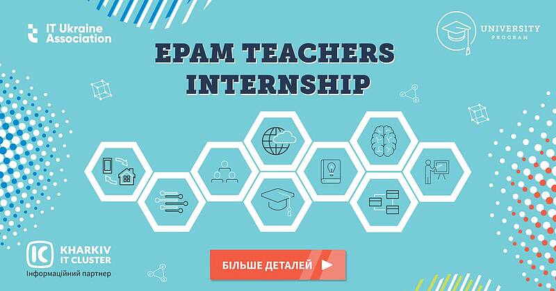 Програма стажування Teachers Internship направлена на допомогу викладачам збагатити теоретичні знання практичним проєктним досвідом і дозволить побачити роботу IT-компанії «зсередини». Стажування в компанії «EPAM» наддасть можливість краще розуміти сьогоднішні реалії ІТ сфери та передавати студентам максимально прикладні та актуальні знання і навички для успішної кар'єри в майбутньому.