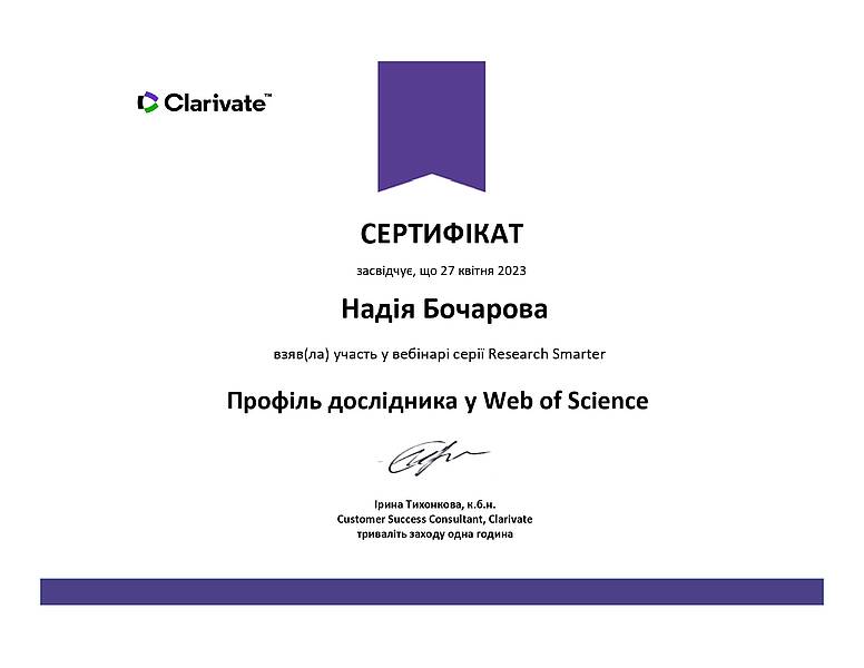 На кафедрі менеджменту нашого університету викладачі постійно працюють над вдосконаленням своїх знань та навичок, щоб забезпечити максимально якісну підготовку для своїх студентів. Викладачі кафедри менеджменту продовжують підвищувати свій професійний рівень, беручи участь у вебінарах від компанії Clarivate. Так, доц. Бочарова Н.А. та проф. Федотова І.В. пройшли цикл вебінарів серії "Research Smarter".