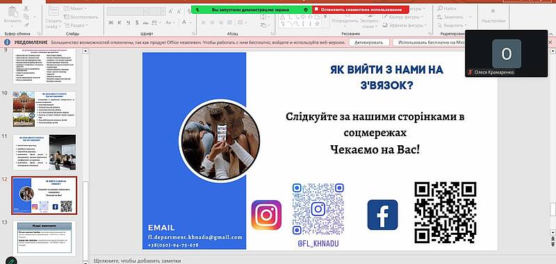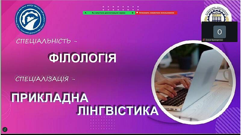 Кафедра іноземних мов провела профорієнтаційну онлайн-зустріч з одинадцятикласниками Харківського ліцею №108. Метою заходу було ознайомлення майбутніх абітурієнтів зі спеціальністю В11 «Філологія», спеціалізацією В11.10 «Прикладна лінгвістика», яка органічно поєднує гуманітарні знання та цифрові технології.
