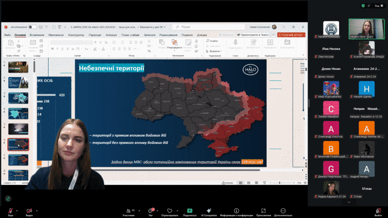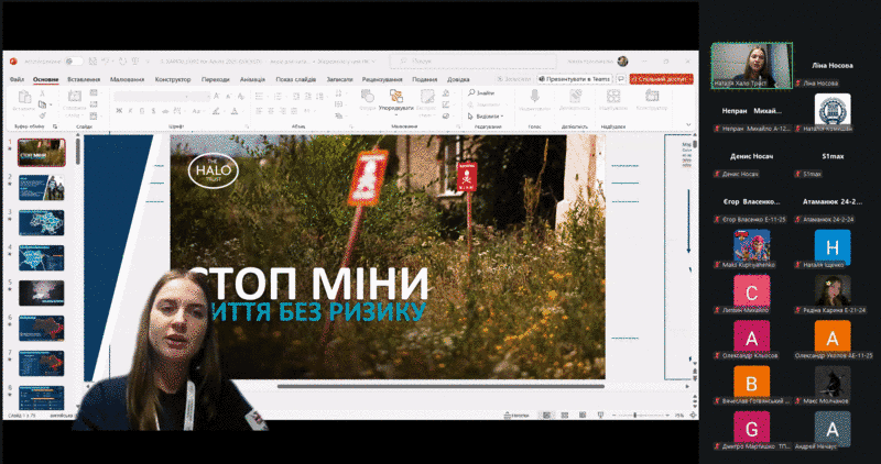 11 березня 2026 року здобувачі вищої освіти рівнів бакалавра, магістра та доктора філософії спеціальності D3 «Менеджмент» взяли участь в інформаційно-роз’яснювальній зустрічі на тему «Стоп міни. Ризики у фокусі», яку провели представники міжнародної гуманітарної організації The HALO Trust в Україні, що спеціалізується на гуманітарному розмінуванні.