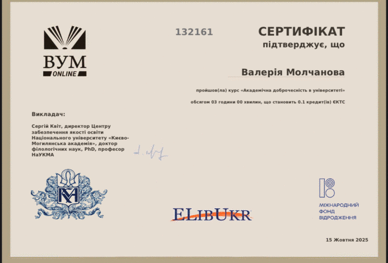 За результатами успішного проходження курсу студенти отримали відповідні сертифікати, що підтверджують набуття знань і практичних навичок дотримання академічної культури та відповідального ставлення до навчального процесу.