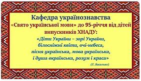У цей передсвятковий день, не зраджуючи традиціям, колектив кафедри українознавства підготував подарунок до 95-річчя ХАДІ-ХНАДУ - концертну програму «Свято української мови», учасниками якого стали дітки наших талановитих випускників. Приємного перегляду!