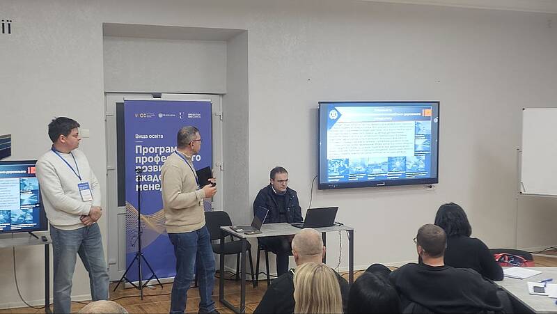 Учасники у складі: проректор Микола Михалевич, декан ДБФ Сергій Бугаєвський, відповідальний секретар приймальної комісії ХНАДУ Геннадій Птиця, директор ННІМОС Антон Холодов, завідувач кафедри будівництва та експлуатації автомобільних доріг Роман Смолянюк, завідувач кафедри двигунів внутрішнього згоряння Ігор Нікітченко та заступник декана МФ Сергій Неронов презентували ХНАДУ, отримали багато корисних знань щодо сучасних тенденцій у ролі університету у контексті суспільних трансформацій та прийняли участь у жвавих обговореннях в контексті третьої місії університетів. Попереду навчання з низкою практичних вправ та наступні модулі в очному форматі.