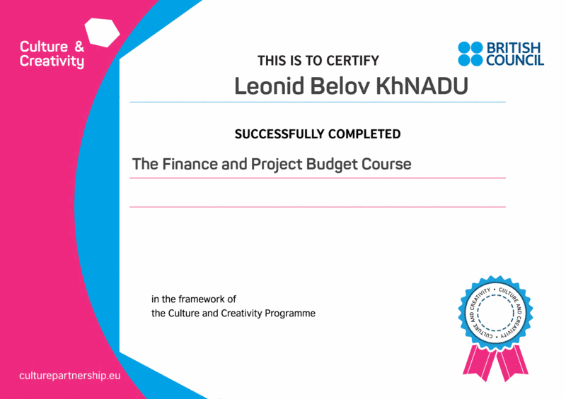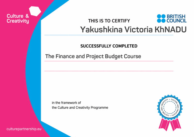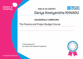 Протягом останнього тижня січня студенти групи ЕА-31-20 Леонід Бєлов, Максим Гаврилюк, Оксана Дєвочко, Дар'я Костяниця, Дмитро Осадчій, Анастасія Половко, Альона Шулепова, Вікторія Якімова, Вікторія Якушкіна та Дарина Яшарова під керівництвом куратора групи, доцента кафедри обліку і оподаткування Вербицької В.І. прослухали курс "Фінанси і проектний бюджет" під егідою відкритої Європейської асоціації "CULTURE AND CREATIVITY ASSOCIATION". Курс можна було прослухати як українською, так і англійською мовами. За підсумками участі у заході студенти пройшли тестування, гідно відповіли на поставлені в ньому питання і отримали сертифікати.