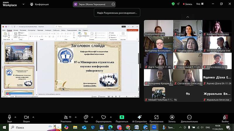 11 квітня 2025 року в межах 87-ї Міжнародної студентської наукової конференції відбулося секційне засідання кафедри філософії та педагогіки професійної підготовки, яке об’єднало студентське наукове середовище навколо актуальних тем педагогіки, психології, філософії, соціології та політології.