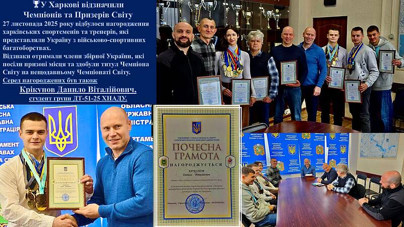 ​27 листопада 2025 року відбулося урочисте нагородження харківських спортсменів та тренерів, які представляли Україну з військово-спортивних багатоборствах.