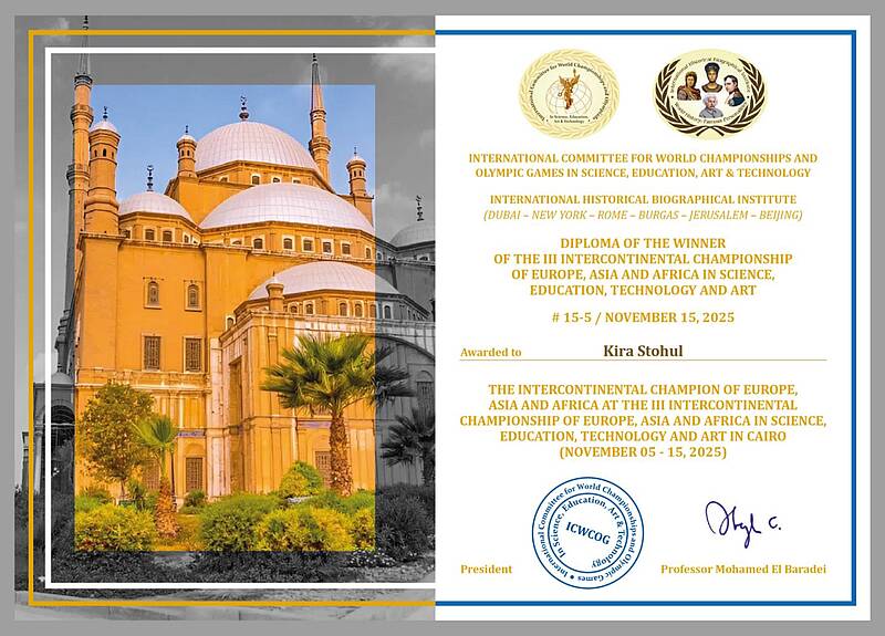 У період 5-15 листопада 2025 року в м. Каїр (Єгипет) відбувся III Міжконтинентальний чемпіонат Європи, Азії та Африки з науки, освіти, технологій та мистецтва.