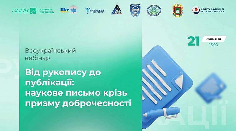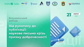У межах інноваційного проєкту з дослідницької доброчесності (Research Integrity), який реалізує Всеукраїнська громадська організація «Інноваційний університет» спільно з Українським офісом дослідницької доброчесності (UkrRIO), запрошуємо представників наукової та освітньої спільноти (аспірантів, наукових і науково-педагогічних працівників) взяти участь у Всеукраїнському вебінарі «Від рукопису до публікації: наукове письмо крізь призму доброчесності».