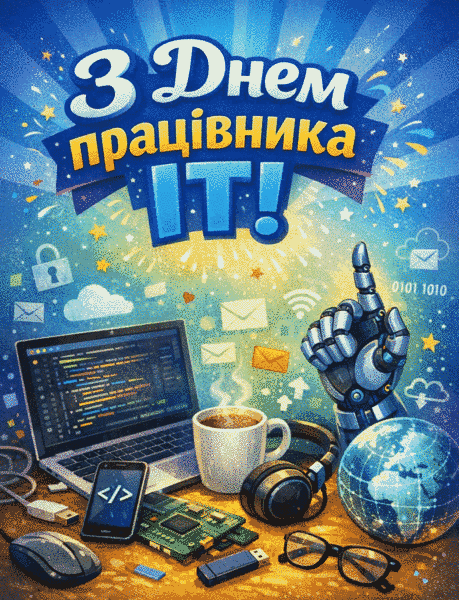 Бажаємо всім причетним до сфери інформаційних технологій стабільної роботи систем, чистого коду, цікавих проєктів, професійного зростання, творчого натхнення та нових досягнень. Нехай кожен день приносить задоволення від результатів вашої праці та відкриває нові можливості!
