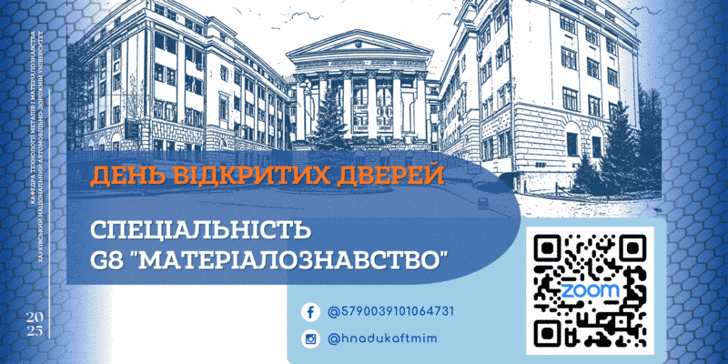 Кафедра технології металів і матеріалознавства імені О.М. Петриченка ХНАДУ запрошує абітурієнтів, їхніх батьків та всіх зацікавлених долучитися до Дня відкритих дверей спеціальності G8  «Матеріалознавство».